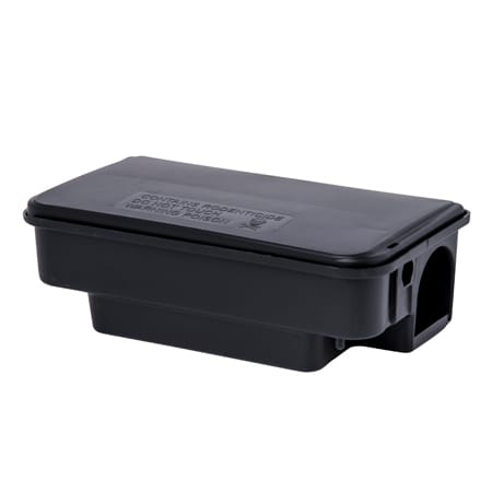 Contenitore per esche rodenticide con struttura portante in polipropilene di medie dimensioni per topi e ratti che può essere posizionato discretamente lungo il perimetro interno ed esterno degli edifici.