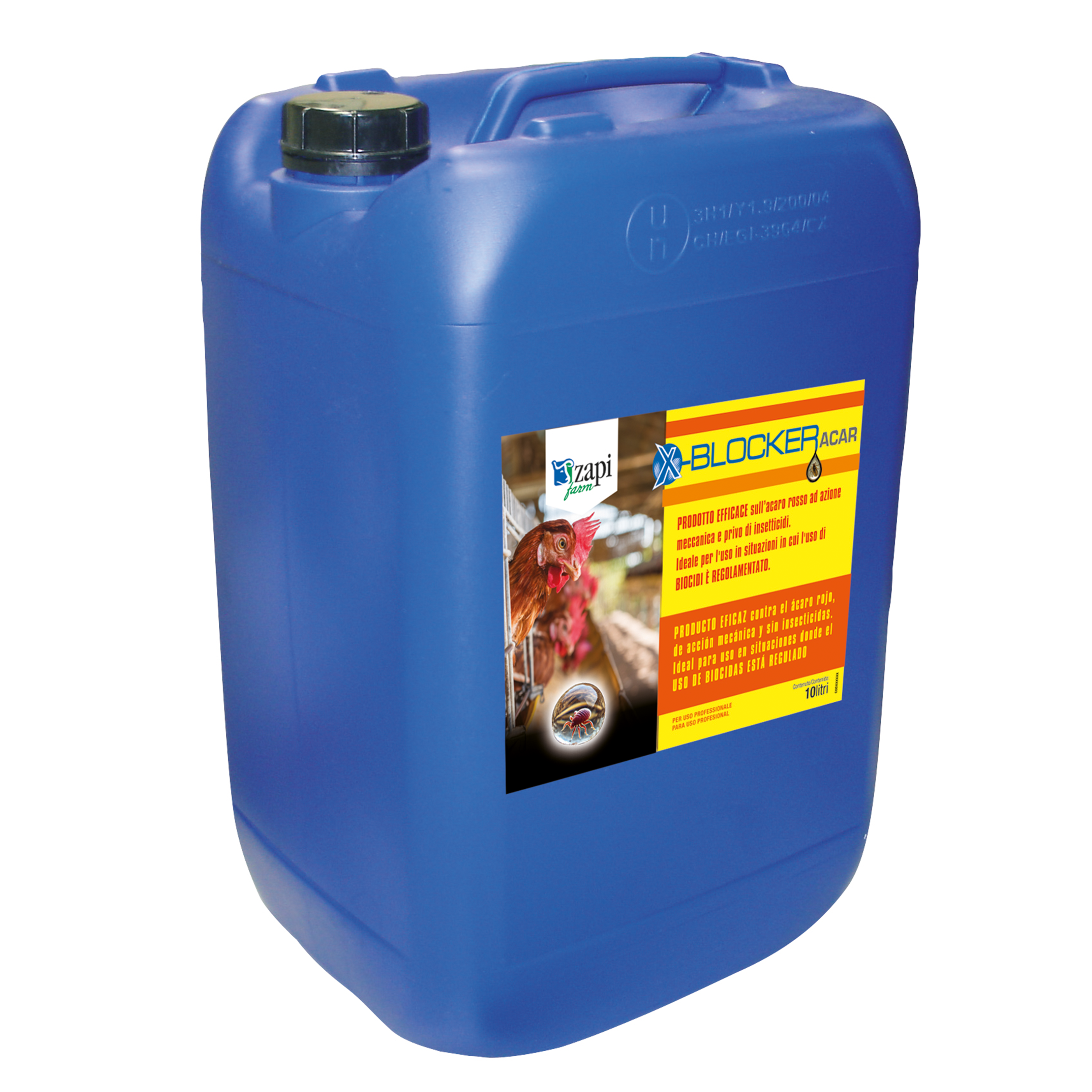 X-BLOCKER ACAR è un formulato studiato per garantire il controllo per via meccanica dell’acaro pollino negli ambienti in cui questo predilige vivere e riprodursi. La composizione chimica del prodotto è tale per cui la viscosità della soluzione garantisce l’immobilizzazione e la morte degli individui trattati, anche di quelli nascosti nelle crepe e fessure di pollai e gabbie. Data l’assenza di sostanze insetticide, siliconi e sostanze infiammabili, può essere utilizzato in presenza di polli e galline, avendo cura di non veicolare la soluzione del prodotto sugli animali.